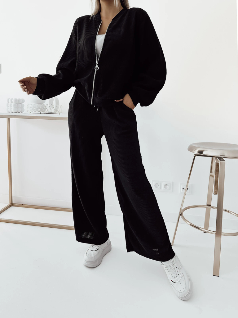 - Мега зручний жіночий повсякденний комплект, виконаний з м'якої тканини а-ля вельвет. Блуза на блискавці з довгим рукавом. Широкі штани з 2 прорізними кишенями, на резинці та зав'язках на талії. Ідеальна основа для багатьох повсякденних образів!