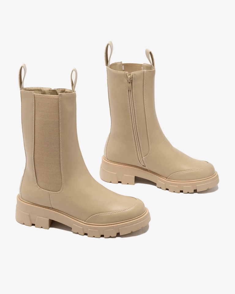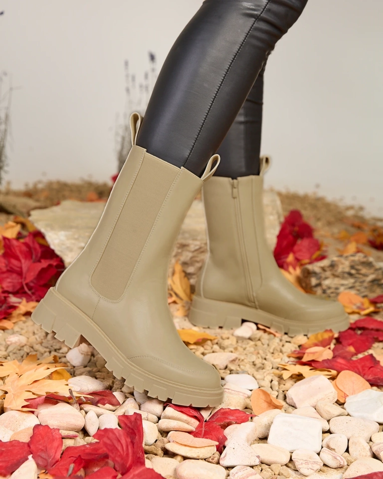 - Жіночі високі черевики з екологічної шкіри. Модель на блискавці, всередині підкладка з тканинного матеріалу, підошва гумова. Додатково збоку еластична вставка. Чудовий варіант на осінь!