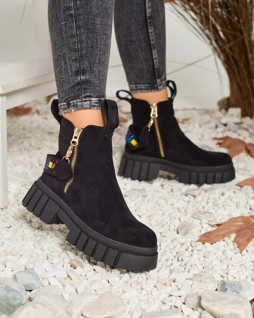 Royalfashion Чорні жіночі черевики з екозамші Poirop