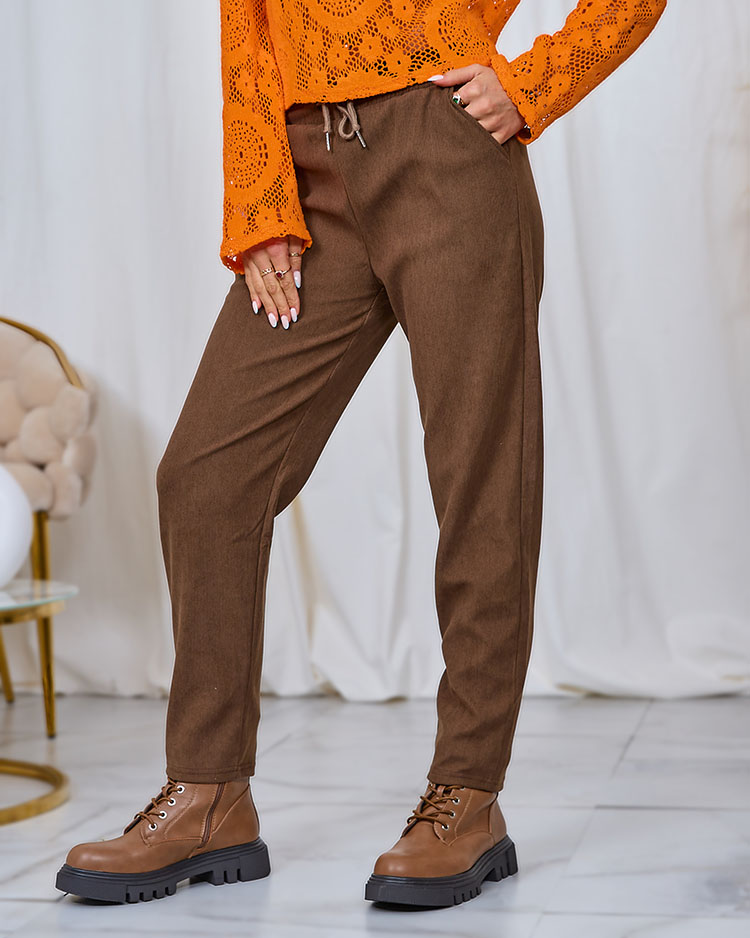 - Сенсаційні прямі жіночі штани з вельветової тканини. Модель має еластичний пояс з регульованими зав'язками. Крім того, спереду дві врізні кишені. Ідеальний варіант для створення стильних образів!