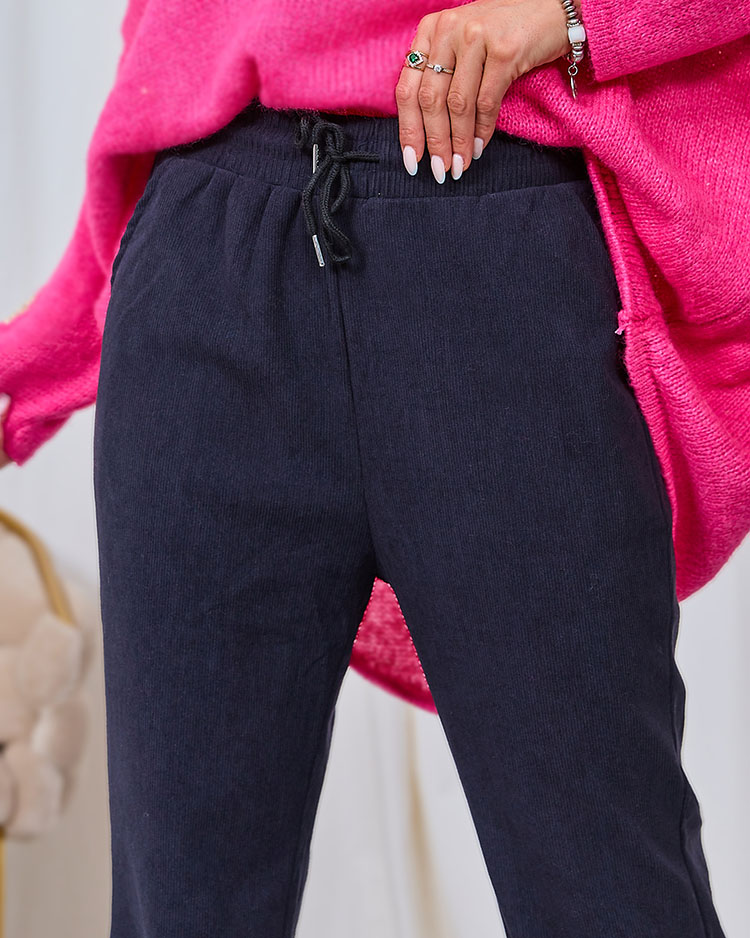 - Мега стильні широкі штани з м'якої вельветової тканини. Еластичний пояс з регульованими зав'язками дозволяє підігнати штани під вашу індивідуальну фігуру. Плюс, спереду дві прорізні кишені.