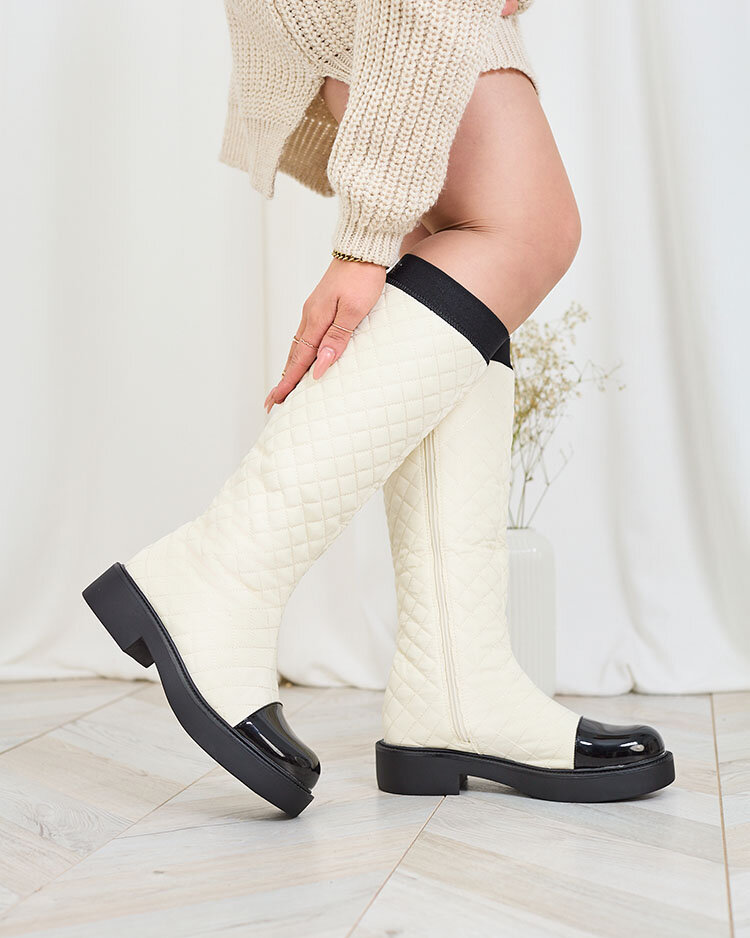Royalfashion Бежеві стьобані жіночі чоботи Ataeb
