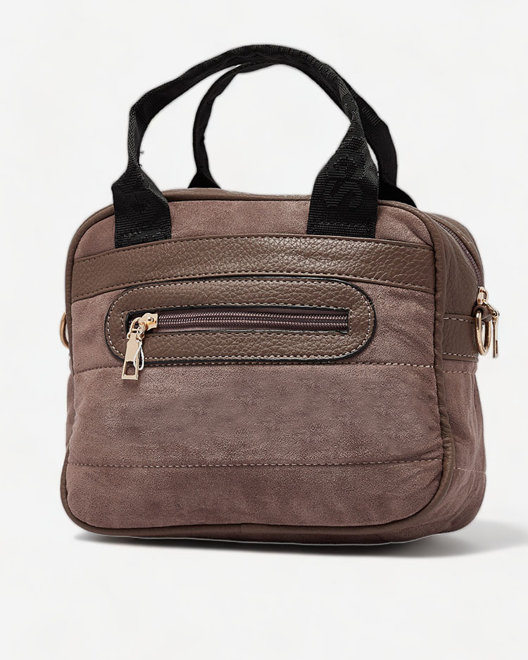 - Унікальна маленька жіноча сумочка з екологічної замшевої шкіри.Модель має:- 1 відділення;- 2 зовнішні кишені на блискавці;- 2 внутрішні кишені, з них 1 на блискавці;- знімний, регульований ремінець.