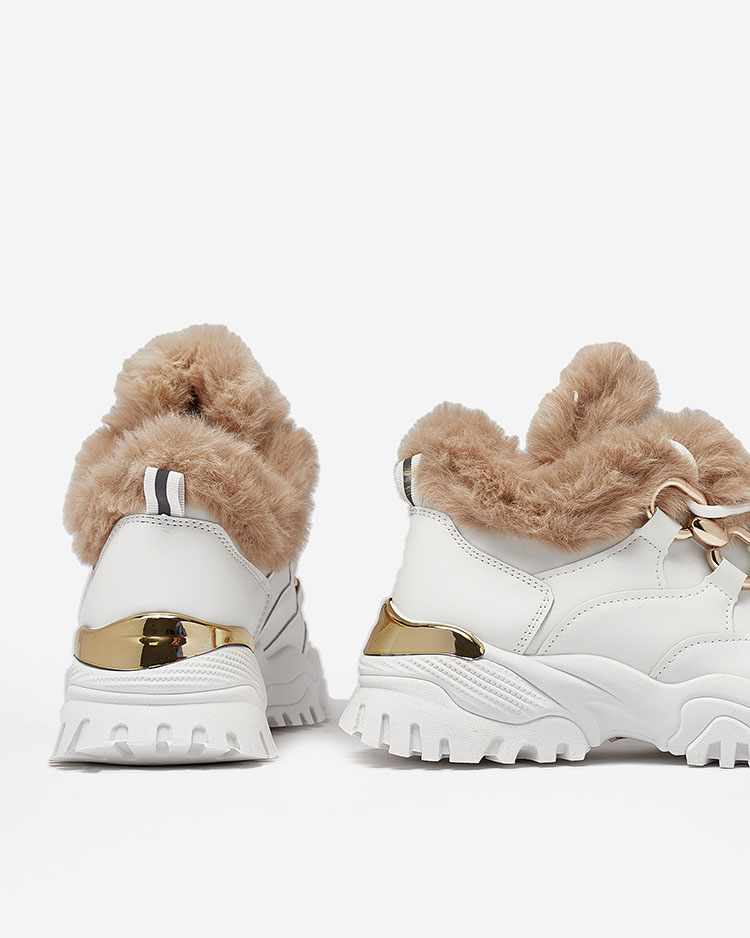 Royalfashion Білі жіночі спортивні кросівки з хутром Wicallen