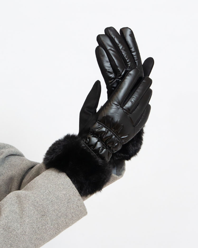 - Теплі рукавички з матеріалу а-ля клейонка, зсередини вкриті екозамшею. Всередині м'яка хутряна підкладка, також хутро в нижній частині. Ідеальні для холодних днів!