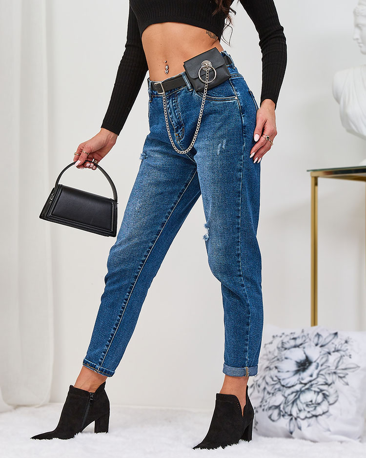 Джинси для мами Royalfashion Сині жіночі з поясом і сумкою