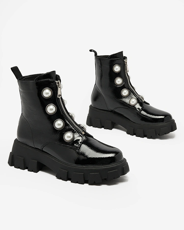 Royalfashion Чорні жіночі лаковані перламутрові чоботи Asiciu