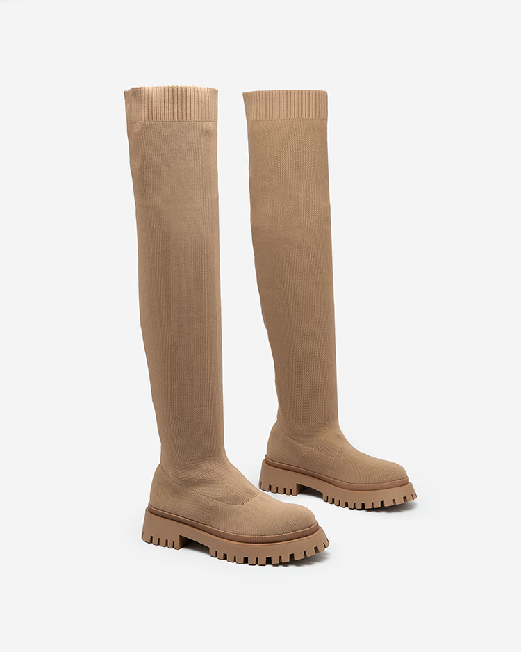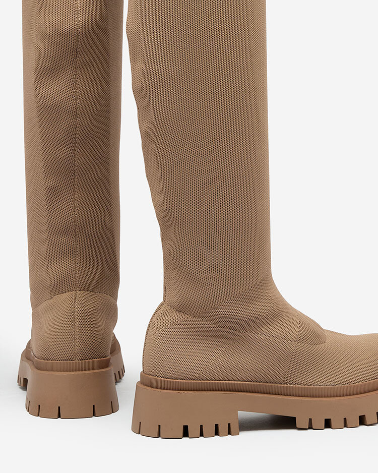 Royalfashion Коричневі жіночі черевики-сліпони вище коліна Radgitas