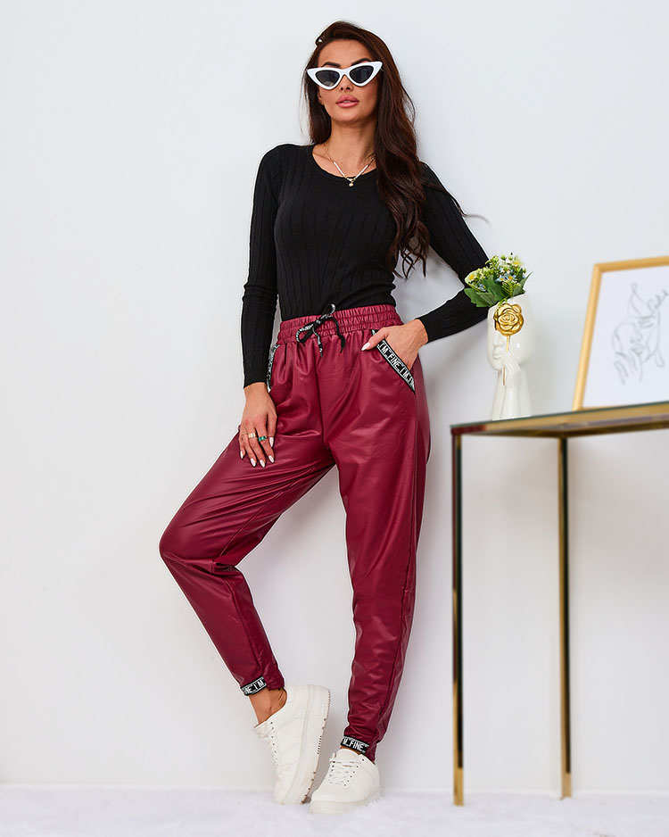 Royalfashion Вільні жіночі штани з екошкіри бордового кольору