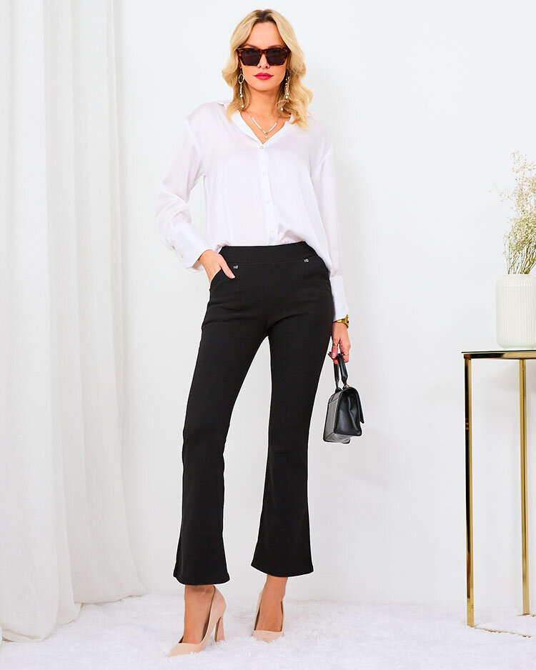 Легінси Royalfashion чорні жіночі з екошкіри a'la bells