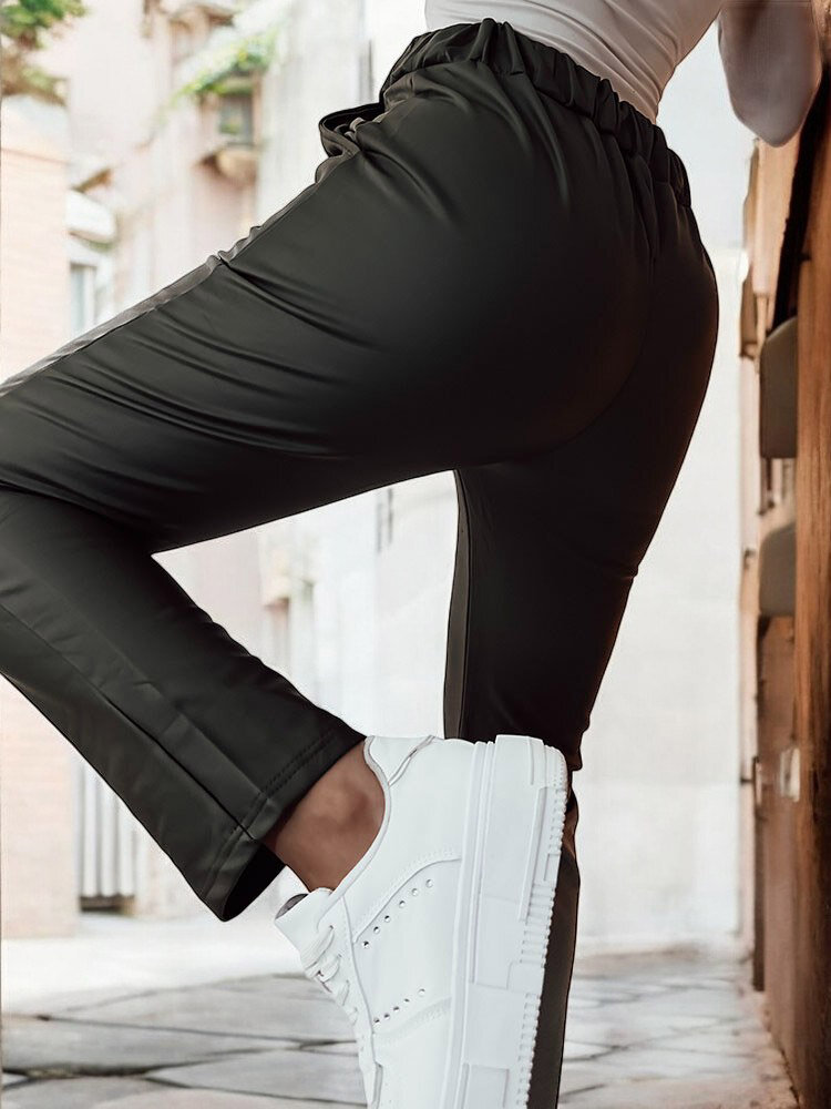 - Сенсаційні жіночі штани, виготовлені з екошкіри. Модель має стрейчевий еластичний пояс, штанини та 2 врізні кишені. Хіт цього сезону! ПРИМІТКА: Похибка вимірювання (+/-) 1 см.