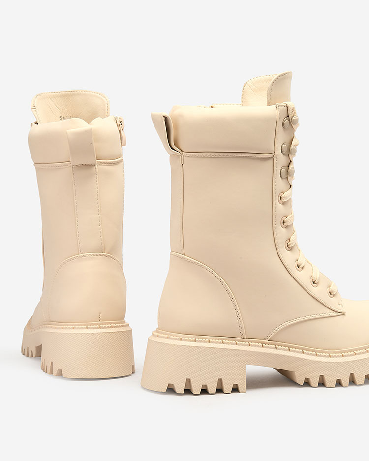 Жіночі черевики на шнурівці Royalfashion бежеві Vifititi