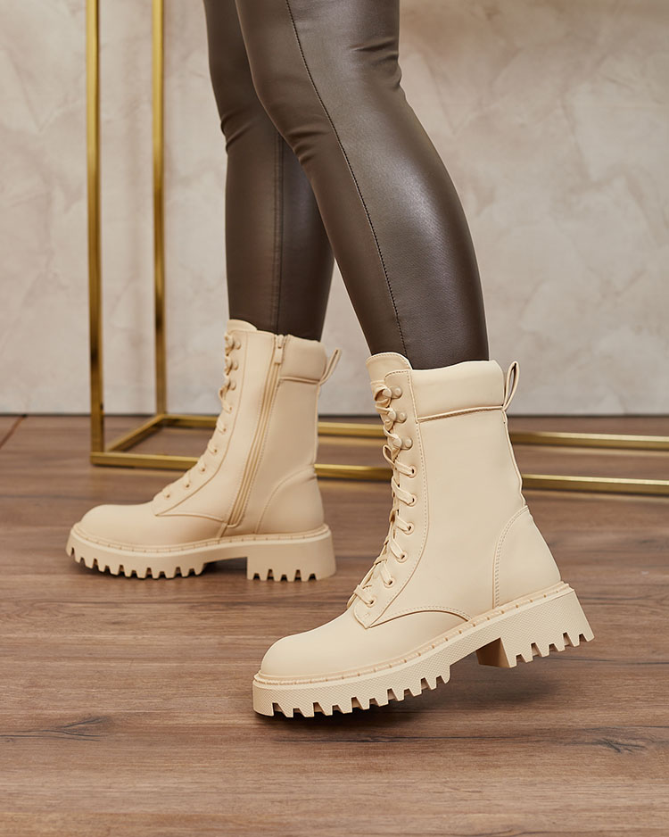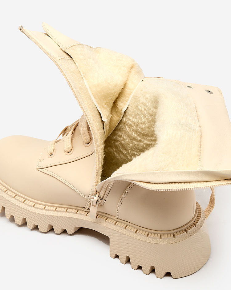 - Нестаріючі жіночі черевики на шнурівці на потовщеній підошві. Верх виконаний з матової екологічної шкіри, середина підбита хутром. Ця пара має бути у вашій осінній шафі!