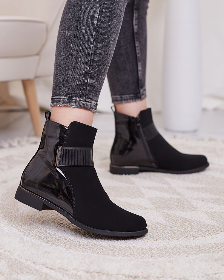 • Елегантні жіночі черевики з декоративним ремінцем. Модель на блискавці, виготовлена з матової екологічної шкіри та лакованих вставок. Оснащені потовщеною підошвою для комфортного носіння!