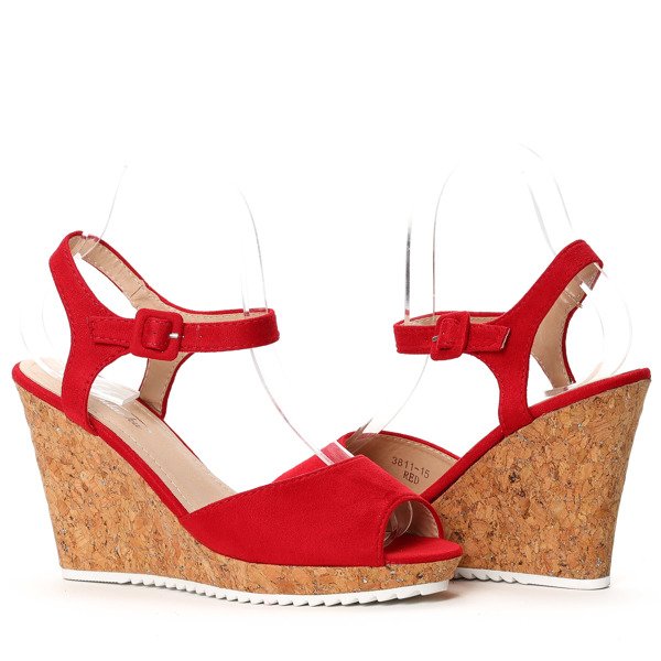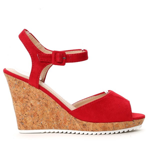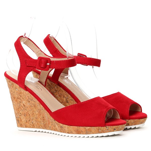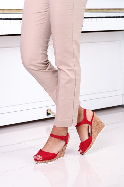Czerwone sandałki na koturnie - Obuwie