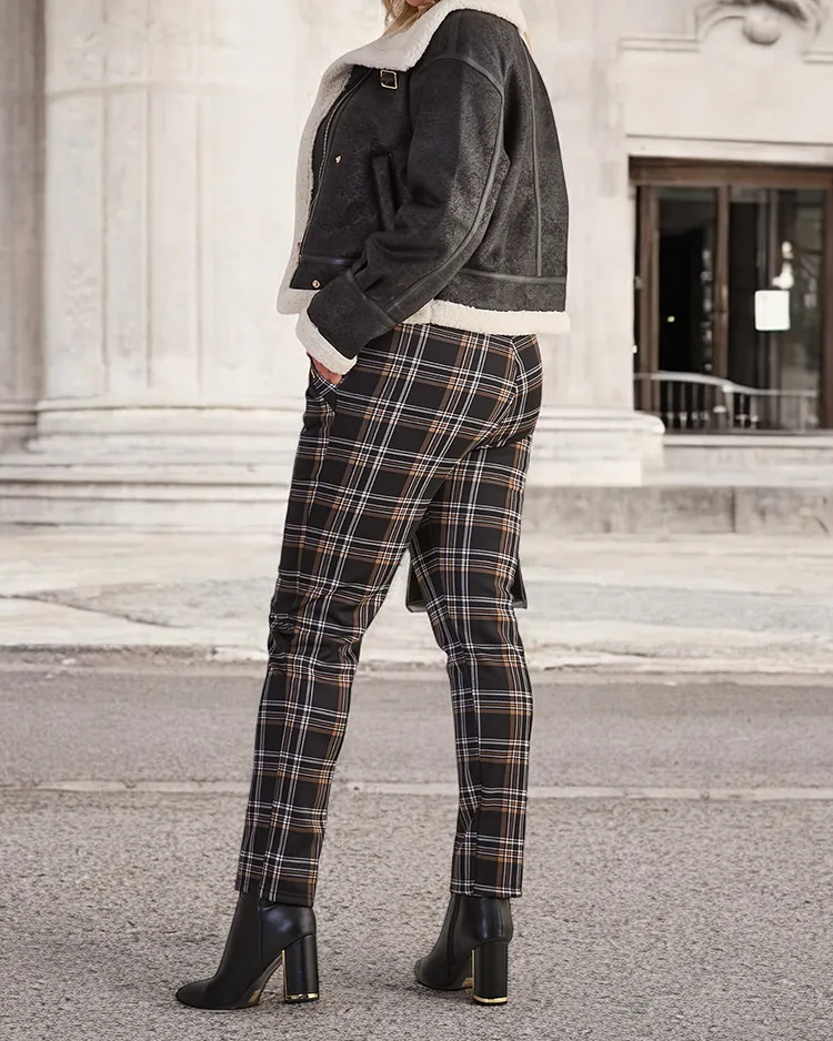 - Жіночі лосини, виконані з еластичної тканини. Модель має широкий еластичний пояс та 2 врізні кишені. Виріб утеплений густим хутром та декорований картатим візерунком. Хіт цього сезону!