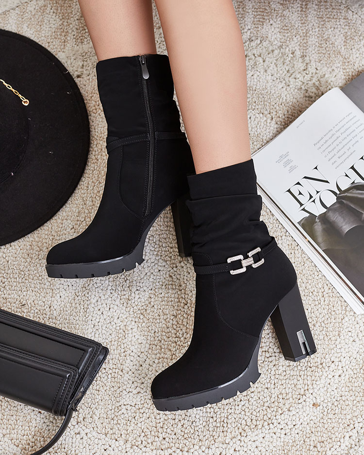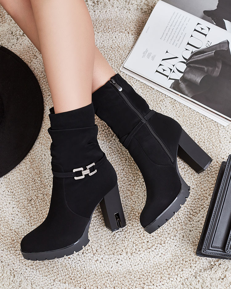 - Стильні жіночі черевики з матової екологічної шкіри нубук ідеально підходять для холодних днів. Верх застібається на блискавку збоку, всередині утеплені м'яким хутром. Модель на високій халяві та з круглим носом.