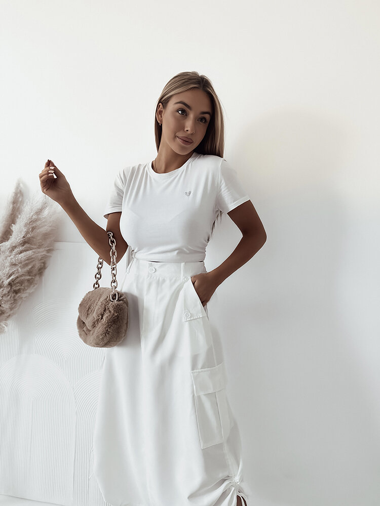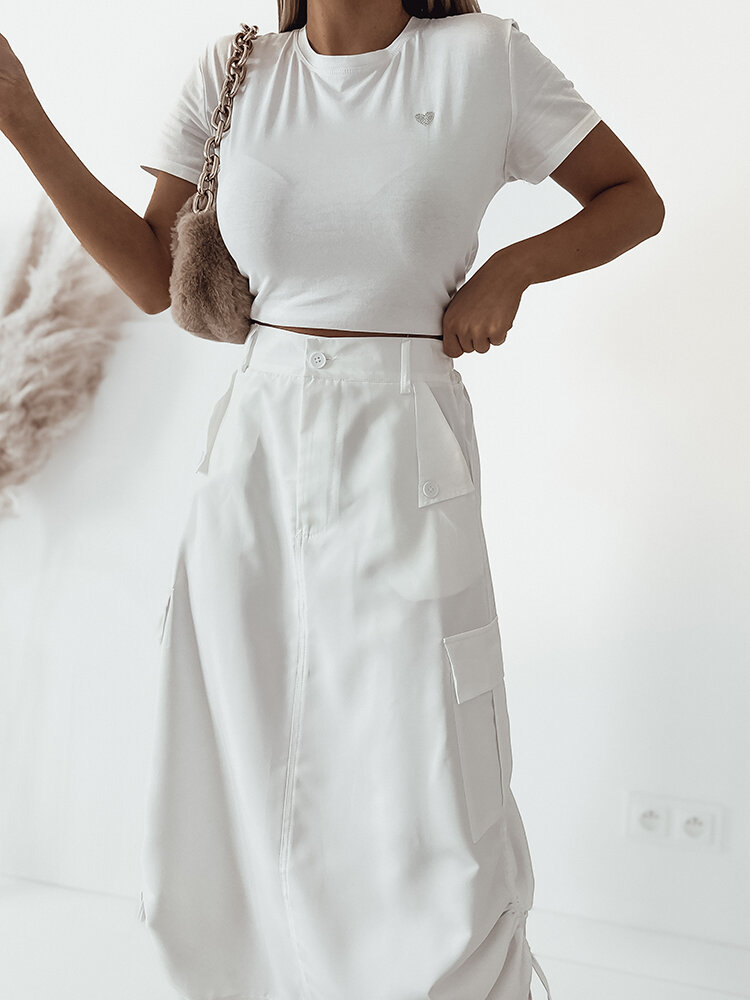 - Жіноча спідниця міді з м'якої тканини. Модель додатково має дві кишені, застібку на ґудзик та еластичний пояс. Ідеальна основа для багатьох унікальних образів! ПРИМІТКА: Похибка вимірювання (+/-) 1 см.