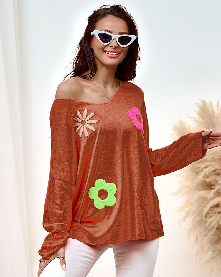 Royalfashion Тонкий жіночий светр з квітковими нашивками