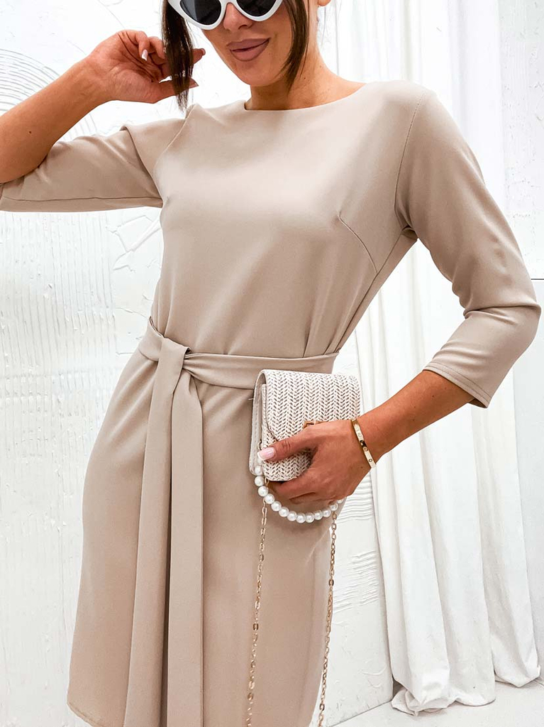 - Жіноча сукня до коліна з довгими рукавами та круглим вирізом. Плюс пояс у комплекті. Must have цього сезону! ПРИМІТКА: Похибка вимірювання (+/-) 1 см. Розміри виміряні в розгорнутому вигляді.