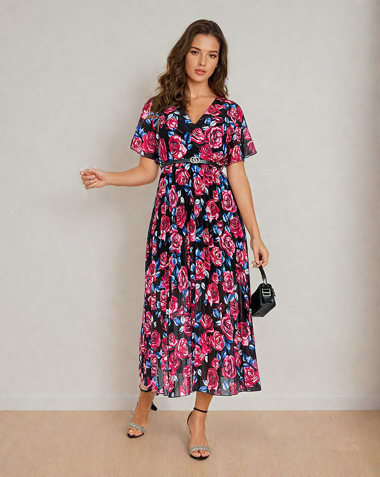 Royalfashion Жіноча плісирована квіткова сукня міді