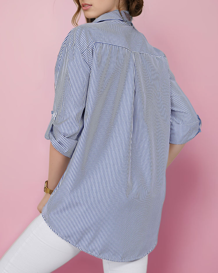 • Сенсаційна жіноча смугаста сорочка з довгим рукавом. Модель з комірцем, застібається на ґудзики. Must have в гардеробі кожної жінки!