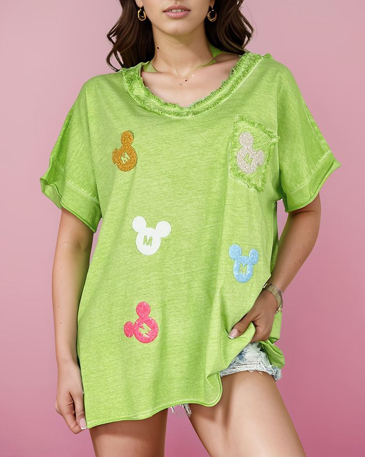 - Повсякденна жіноча футболка з нашивками на короткий рукав. Ідеальна основа для багатьох повсякденних образів! ПРИМІТКА: Похибка вимірювання (+/-) 1 см. Розміри виміряні в горизонтальному положенні.