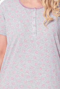 - Дуже зручна нічна сорочка для вагітних та годування з коротким рукавом. Виготовлена зі 100% бавовни та оздоблена декоративним принтом. Модель має круглий виріз горловини та ґудзики для комфортного та непомітного годування малюка.