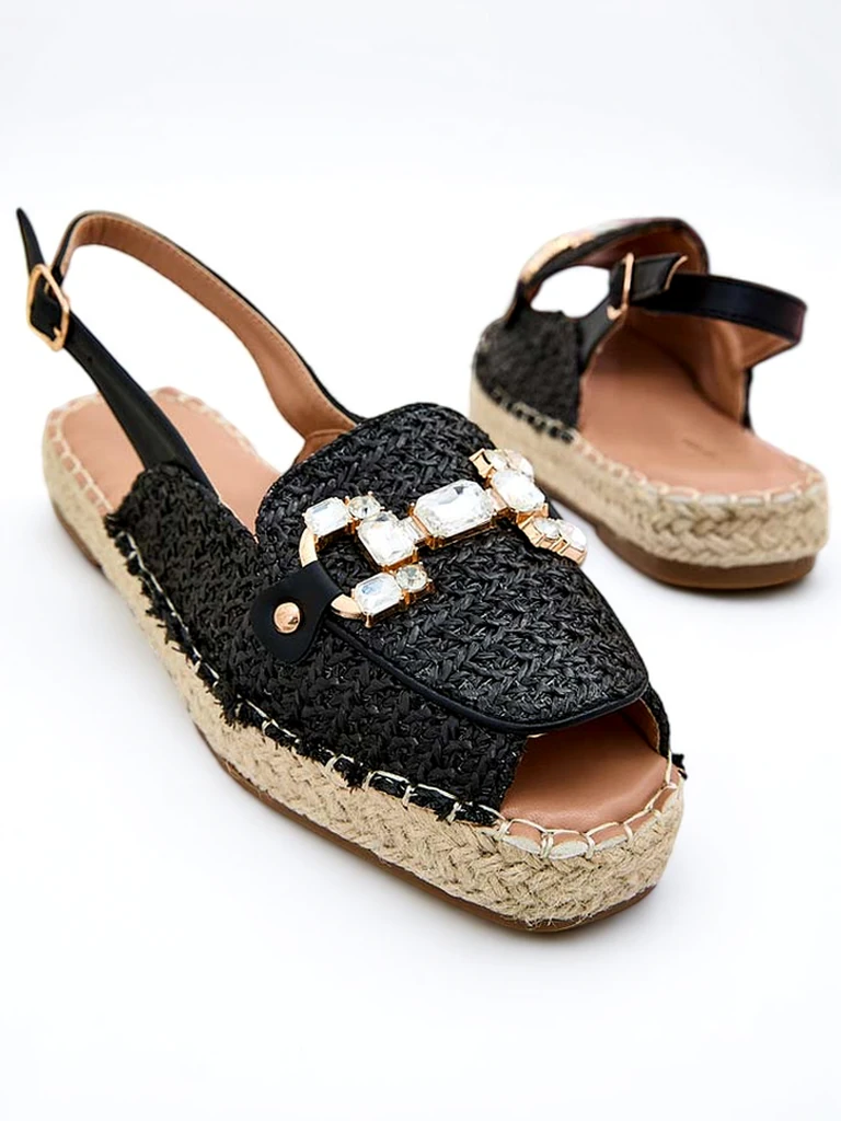 • Унікальні жіночі еспадрильї з синтетичного матеріалу. Плоска підошва, декорована джутовим шнуром, забезпечує комфорт. Модель сліпони з шкіряним ремінцем та відкритими носками. Ідеальне доповнення до літніх образів!