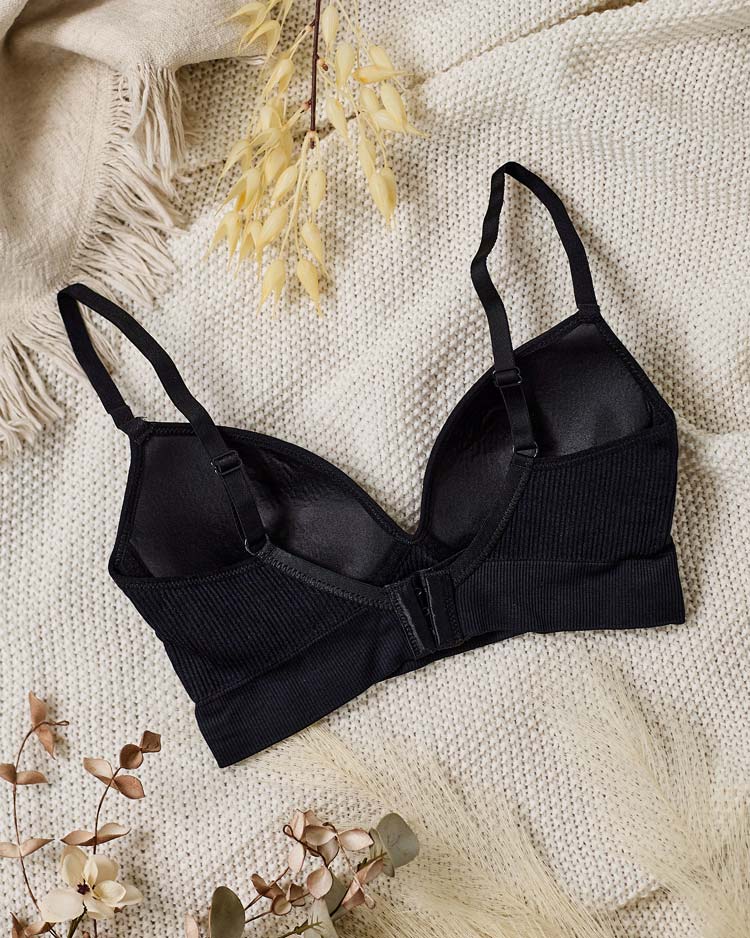 - Жіночий бюстгальтер на кісточках з еластичного, ребристого матеріалу. Модель з регульованими бретелями та незнімними вставками, внизу оброблена еластичною резинкою. Ідеально облягає фігуру.