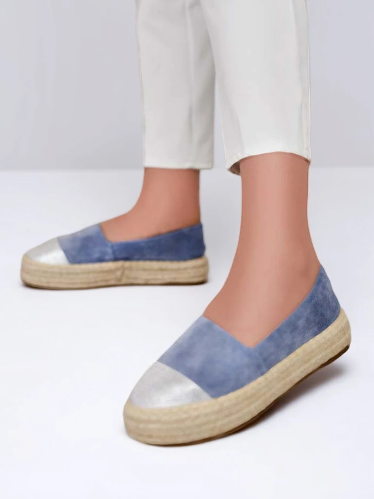 • Унікальні жіночі еспадрильї з еко-замші та тканинної устілки. Плоска підошва, декорована джутовим шнуром, забезпечує комфорт. Модель сліпони. Ідеальне доповнення до літніх образів!