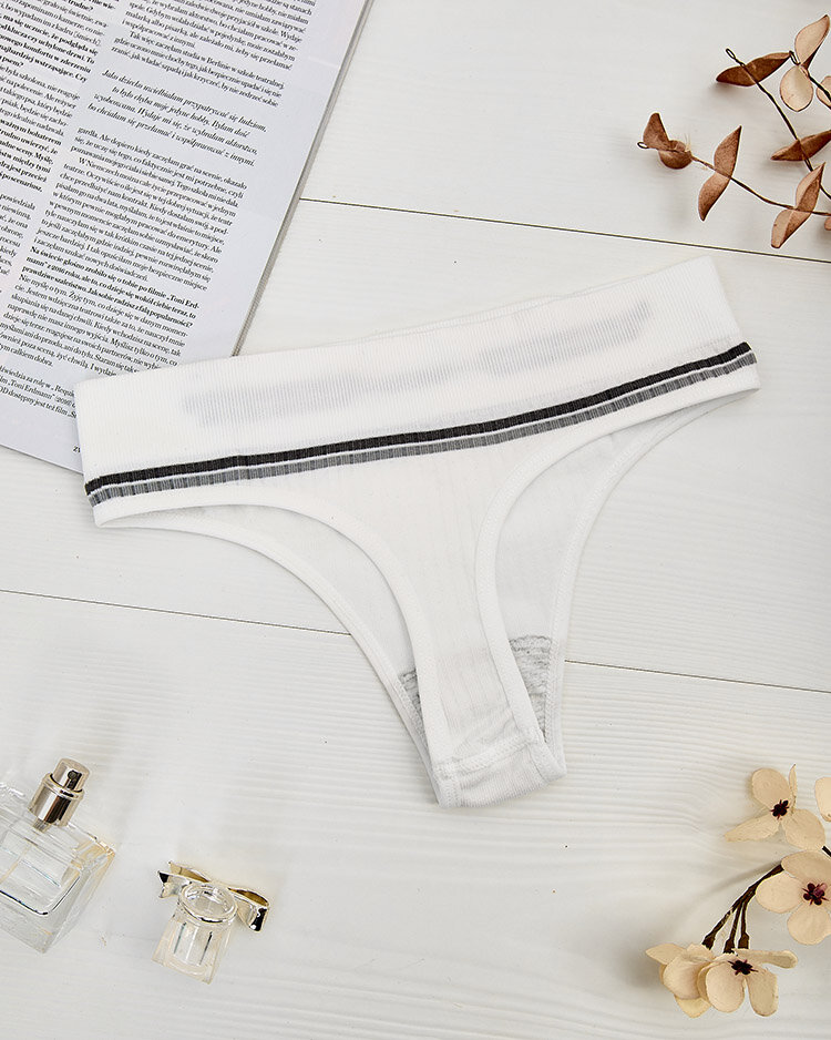 • Жіночі трусики стрінги з ребристої тканини. Модель має широкий еластичний пояс для більшого комфорту. Спідня білизна для жінок, які цінують красу та комфорт і хочуть відчувати себе впевнено та привабливо!
