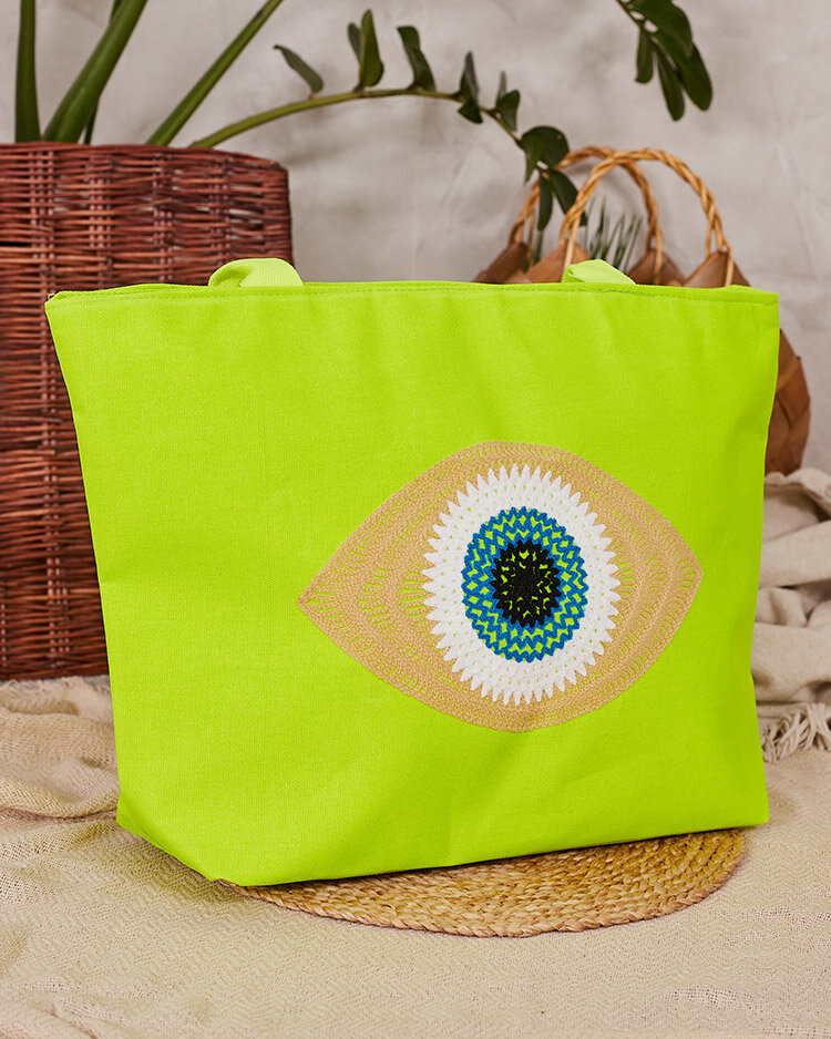 - Велика жіноча сумка, виконана з тканини з вишивкою. Модель має 1 відділення, 1 внутрішнє відділення та застібається на блискавку. Ідеальна на кожен день або для пляжу!