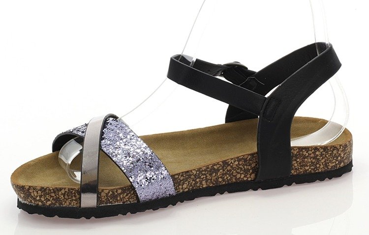 - Зручні босоніжки з еко шкіри. Передня смужка прикрашена блиском. Пряжка збоку. Вони ідеально підходять для теплих днів.