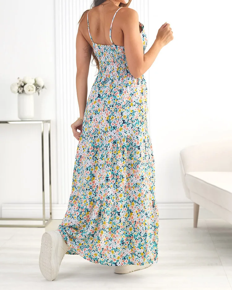 - Візерунчаста жіноча сукня довжини міді з приємної бавовняної тканини. Модель на регульованих бретелях, з v-подібним вирізом горловини та еластичним поясом. Носіть з босоніжками! ПРИМІТКА: Похибка вимірювання (+/-) 1 см.