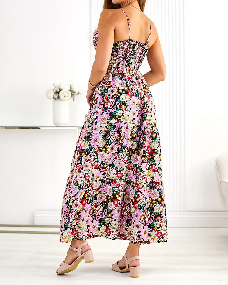 - Візерунчаста жіноча сукня довжини міді з приємної бавовняної тканини. Модель на регульованих бретелях, з v-подібним вирізом горловини та еластичним поясом. Носіть з босоніжками! ПРИМІТКА: Похибка вимірювання (+/-) 1 см.