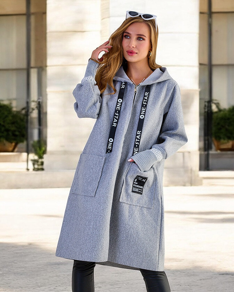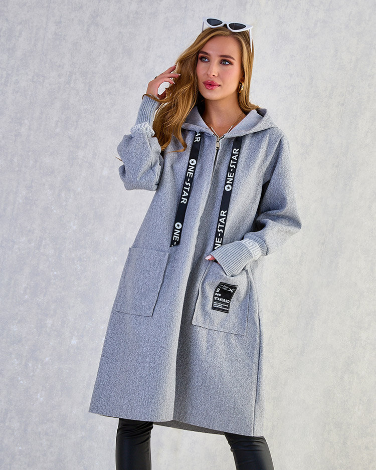 • Оригінальна жіноча куртка а-ля пальто з капюшоном. Модель має довгий рукав та вшивні кишені. Рукава оброблені гумками для кращого прилягання та комфорту в носінні. Ідеальна пропозиція для осені! ПРИМІТКА: Похибка вимірювання (+/-) 1 см.
