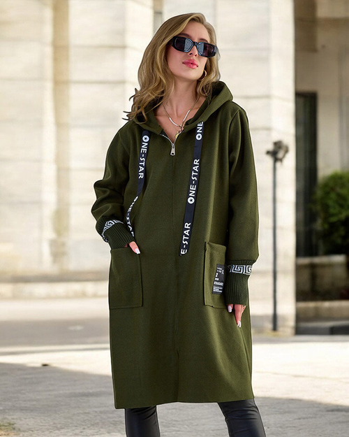 - Оригінальна жіноча куртка а-ля пальто з капюшоном. Модель має довгий рукав та вшивні кишені. Рукава оброблені гумками для кращого прилягання та комфорту в носінні. Ідеальна пропозиція для осені! ПРИМІТКА: Похибка вимірювання (+/-) 1 см.