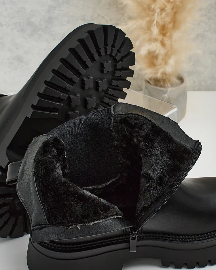 • Черевики на товстій підошві - стиль і комфорт в одному. Еластична вставка збоку та застібка-блискавка для зручності носіння. Повністю виготовлені з еко-шкіри та тканинної устілки. Ця модель додасть вам впевненості!