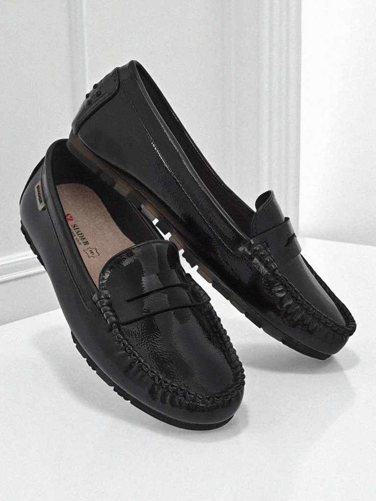 Жіночі Мокасини Cyra Nero з екошкіри лакованої, класичний італійський стиль