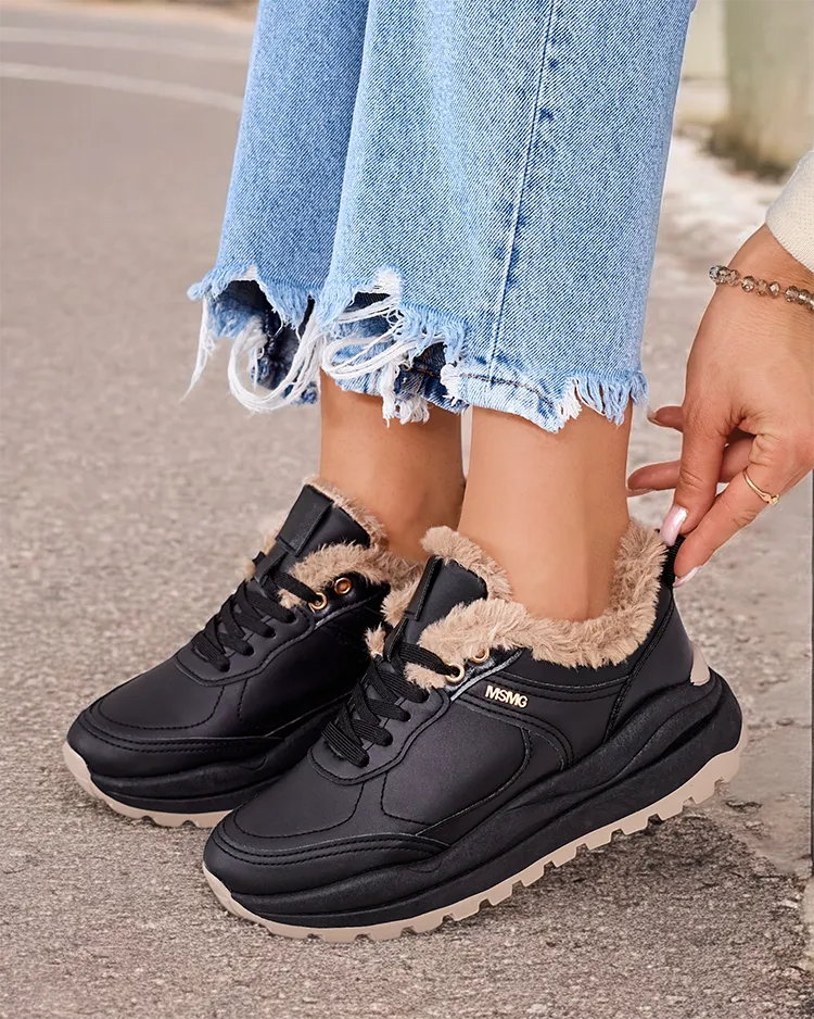 • Жіночі утеплені спортивні кросівки на товстій підошві. Верх на шнурівці з екошкіри. М'яке хутро всередині. Супер доповнення до зимових повсякденних образів!