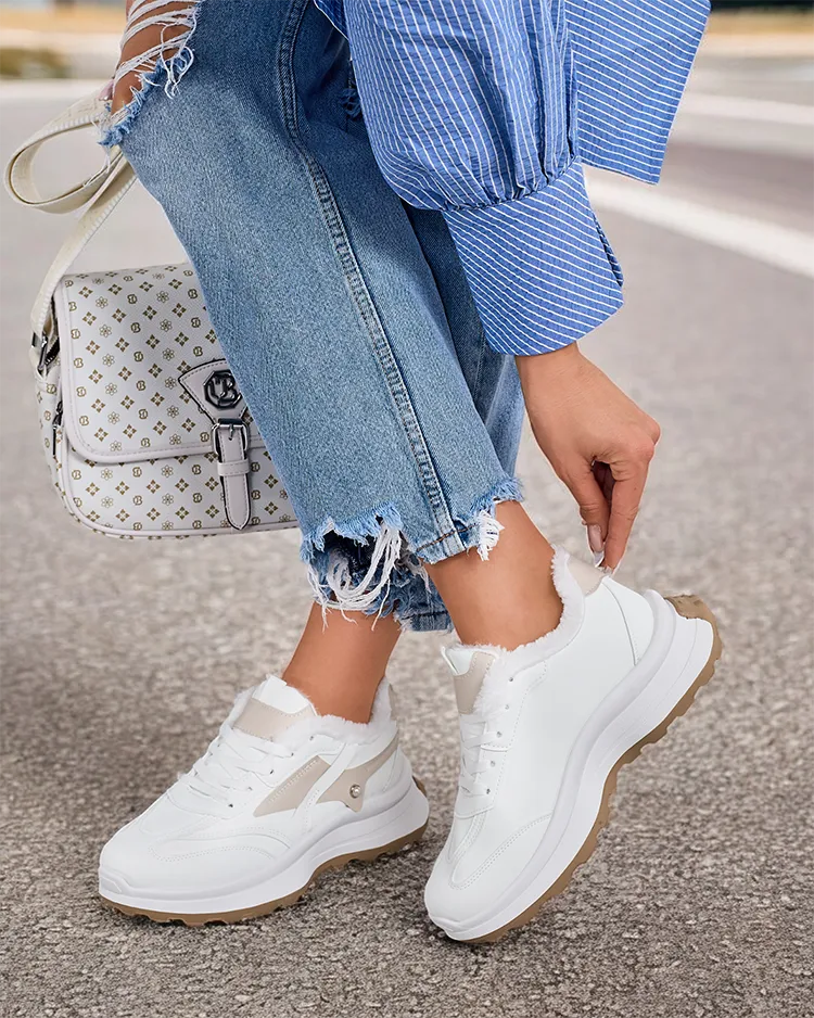 • Жіночі утеплені спортивні кросівки на потовщеній підошві. Верх на шнурівці із замші з елементами екошкіри. Всередині м'яке хутро. Супер доповнення до ваших зимових повсякденних образів!