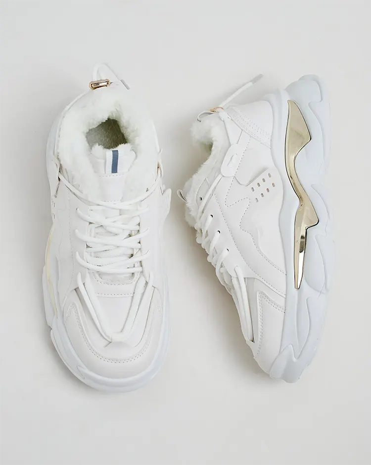 - Жіночі спортивні кросівки на потовщеній підошві. Верх на шнурівці, з екологічної шкіри. Внутрішня частина повністю утеплена хутром. Ідеально підходять до спортивного вбрання!