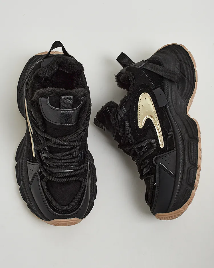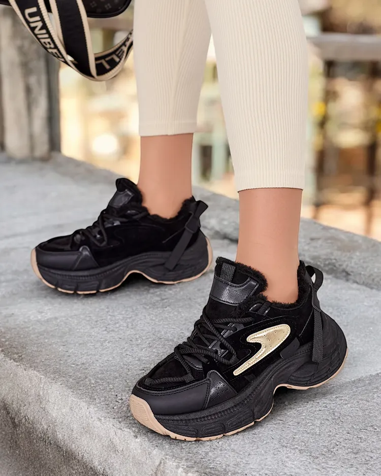 - Жіночі утеплені спортивні кросівки на потовщеній підошві. Верх на шнурівці із замші з елементами екошкіри. Всередині м'яке хутро. Супер доповнення до ваших зимових повсякденних образів!