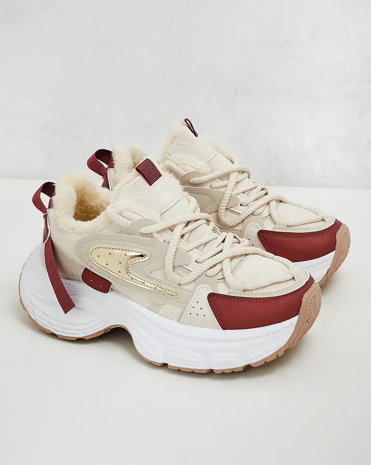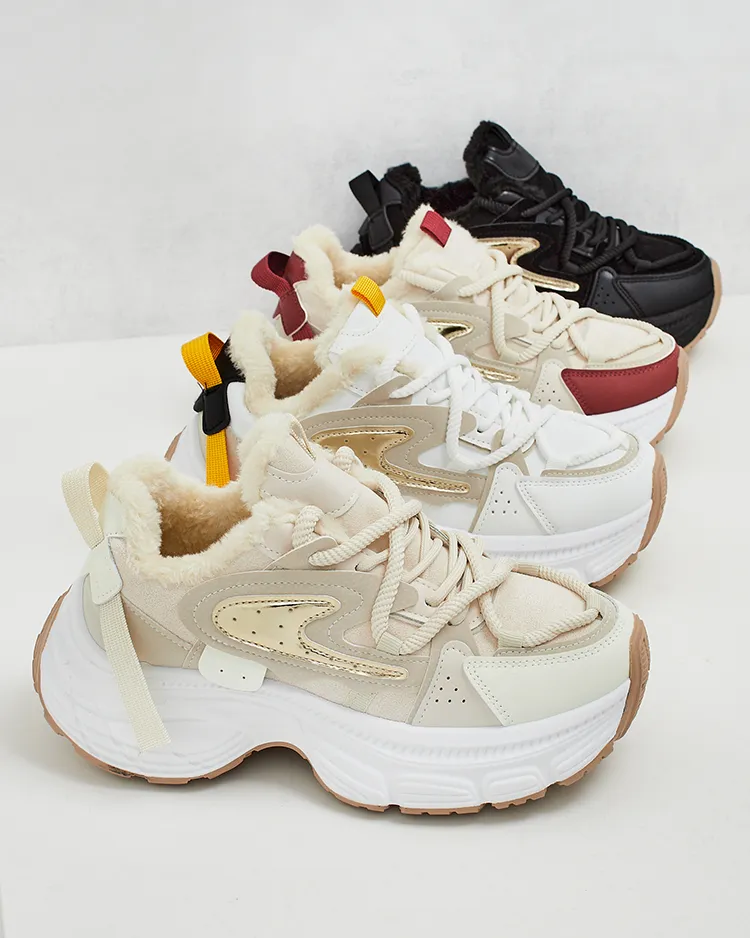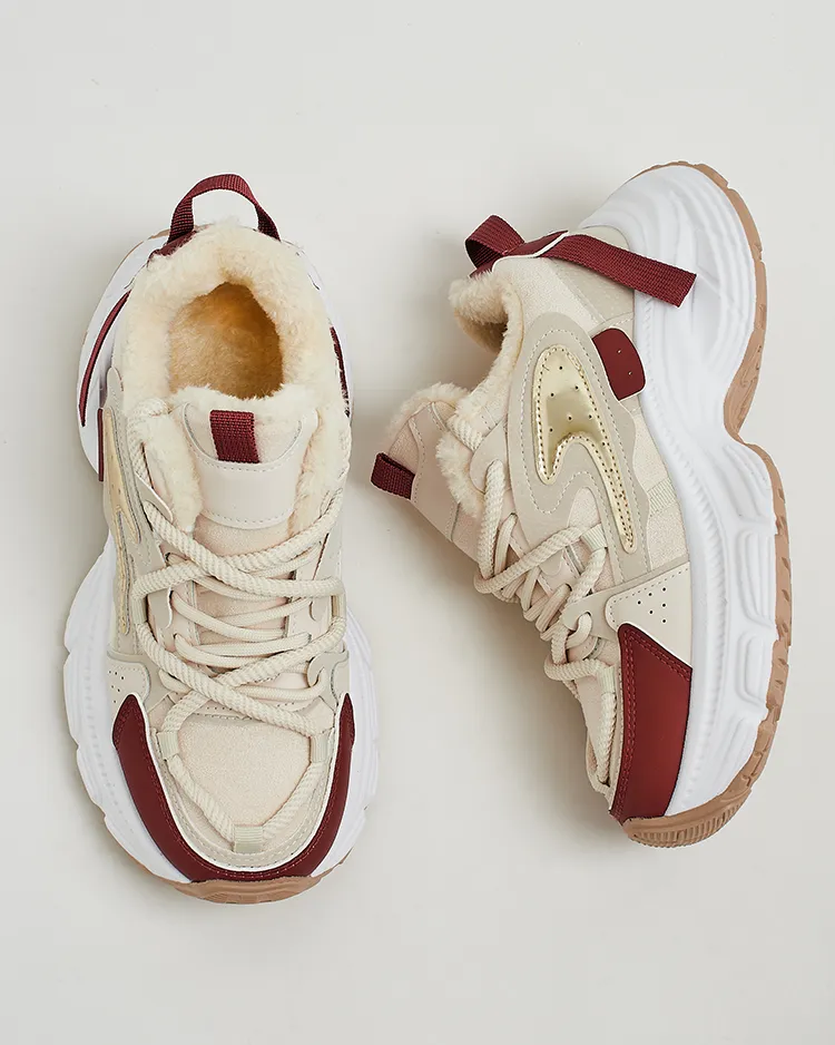 - Жіночі утеплені спортивні кросівки на потовщеній підошві. Верх на шнурівці із замші з елементами екошкіри. Всередині м'яке хутро. Супер доповнення до ваших зимових повсякденних образів!