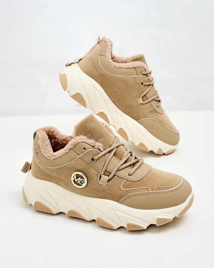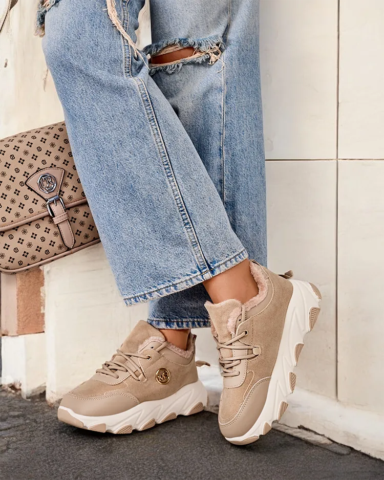 - Жіночі утеплені спортивні кросівки на товстій підошві. Верх на шнурівці з екологічної шкіри. М'яке хутро всередині. Супер доповнення до ваших зимових повсякденних образів!