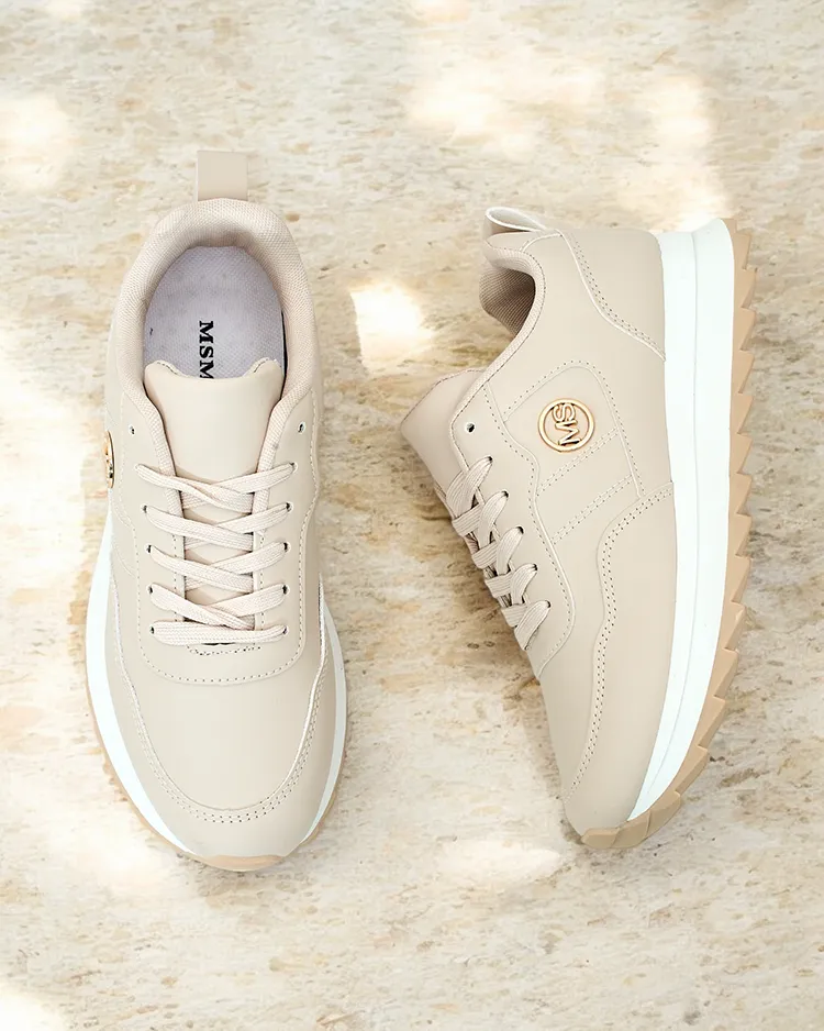 - Жіночі спортивні кросівки на потовщеній підошві. Верх на шнурівці, з екологічної шкіри. Внутрішня частина з приємної тканини. Ідеальні для холодних днів!