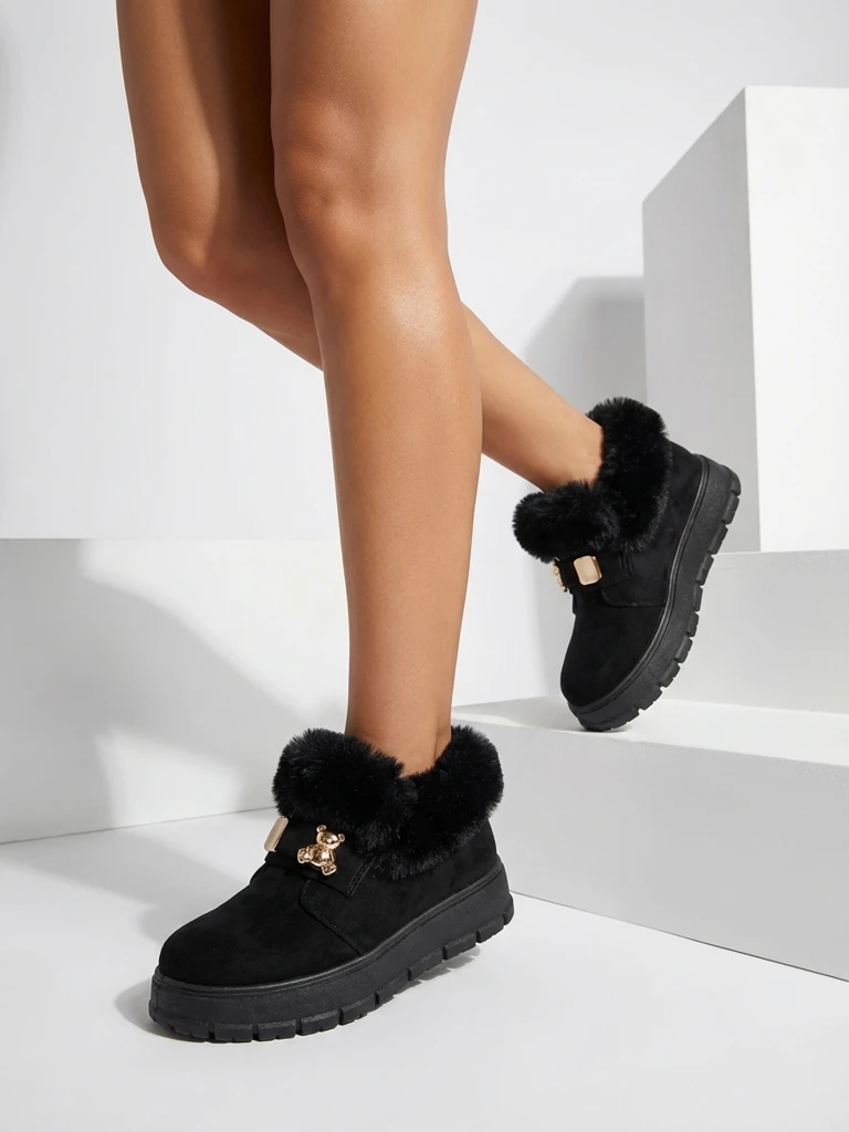 - Чудові жіночі зимові снігоступи на платформі. Верх виконаний з екологічної замші, середина утеплена хутром. Взуття має тонкий декор на верхній частині. Ідеальна основа для зими!