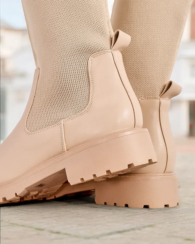 • Стильні жіночі чоботи заввишки до колін на товщій підошві. Верх виготовлений з гнучкого тканинного матеріалу з вставками з еко-шкіри, всередині тканина та штучне хутрове устілка. Модель на всування. Ідеальна для повсякденних осінніх образів!