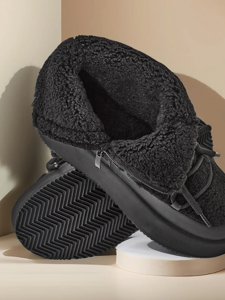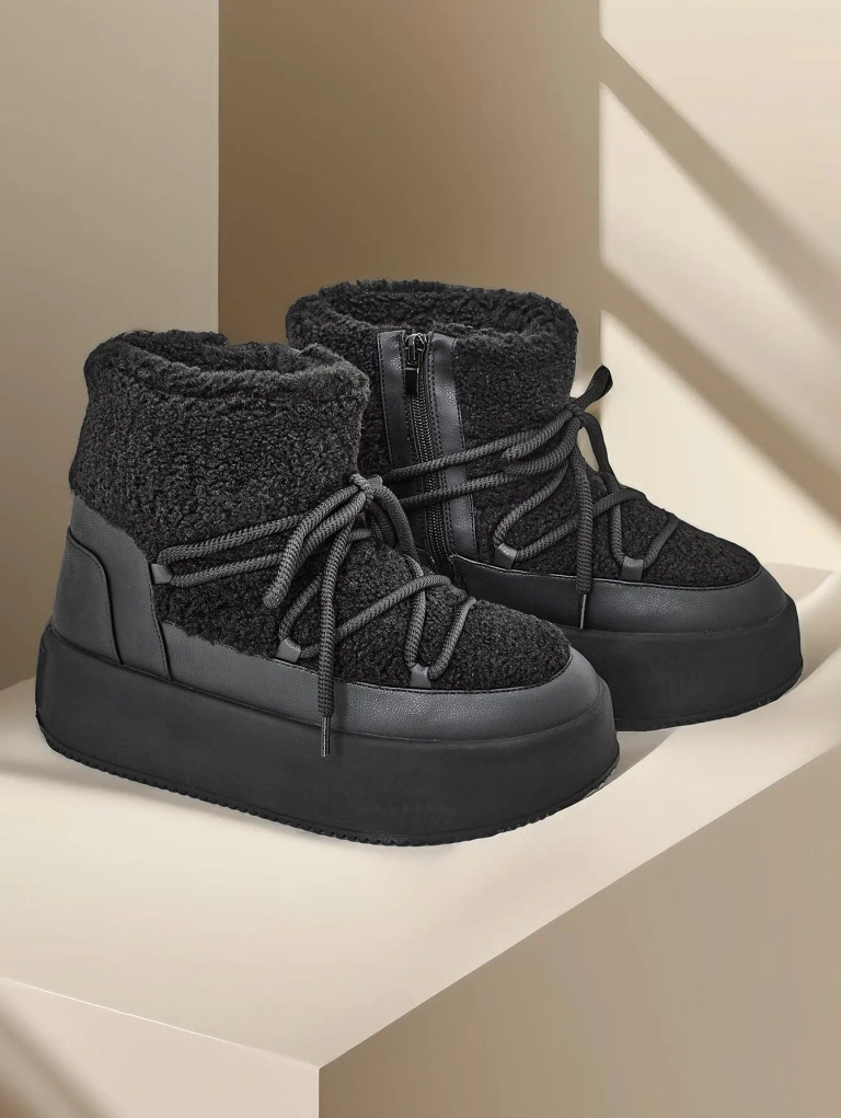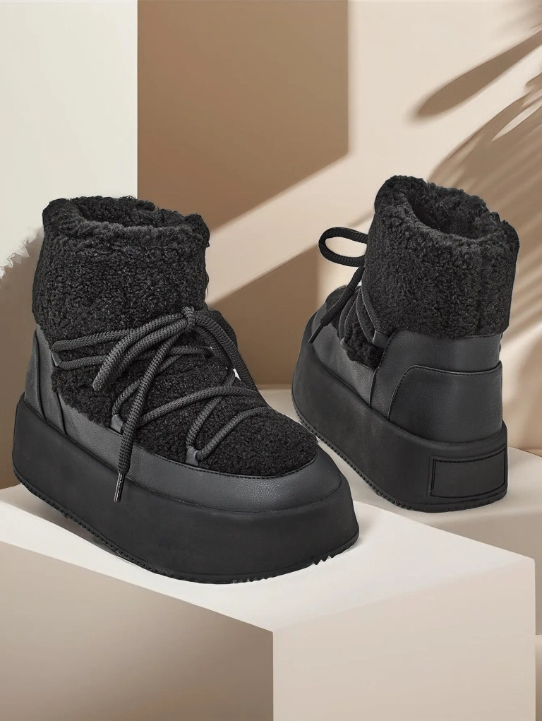 • Жіночі сніжні черевики зі стовбуром, виготовленим з поєднання еко-шкіри та приємної тканини. Усередині знаходиться приємна хутряна підкладка, взуття має блискавку та шнурований стовбур. Ідеально підходять для зими!